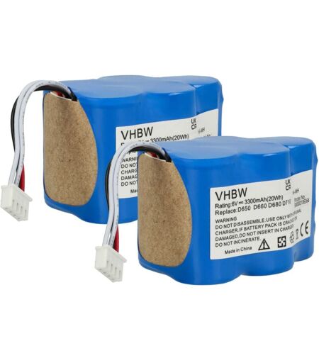 vhbw - the clever way - Batterie de rechange de haute qualité et compatible avec une grande autonomie et compatible avec votre aspirateur robot ou aspirateur robot ainsi qu'appareil de nettoyage (vous trouverez ci-dessous tous les modèles correspondants) - La batterie peut être chargée avec le chargeur standard ou un chargeur compatible - Nos batteries répondent à toutes les normes de sécurité actuelles Pour répandre une odeur fraîche avec votre robot aspirateur ou votre aspirateur, vous pouvez consulter nos offres de cartouches de parfum. CONTENU DE LIVRAISON : - 2x batterie DONNÉES TECHNIQUES : - Technologie : NiMH - Capacité : 3300 mAh - Tension : 6 V - Énergie nominale : 19,8 Wh - Nombre de cellules : 5 Pour garantir la compatibilité, veuillez vérifier si votre batterie utilisée actuellement est répertoriée. REMPLACEMENT POUR : - 945-0005, 945-0006, 205-0001, 945-0024, LP43SC3300P5 vhbw - Accessoires et pièces de rechange de haute qualité pour prolonger la durée de vie de vos ...