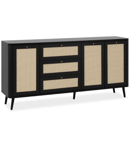 Calicosy - Buffet 175x40x84 cm avec cannage noir et naturel - mabay