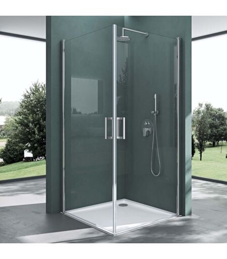 Cabine de douche design RAV24K transparent avec deux portes auto-levantes et pivotantes à près de 180 degrée Dimensions: Porte gauche: 85cm, porte droite: 85cm, hauteur: (sans receveur) 190cm Verre trempé de 6mm aux normes industrielles: DIN EN 12150-1 et DIN EN 14428 avec son revêtement Nano pour un nettoyage plus facile Portes pivotantes à près de 180 degré, Poignées en laiton chromés, profilés en aluminium, joints magnétiques pour la fermeture des portes. Si vous avez encore des questions, n’hésitez pas à nous contacter. Nous sommes à votre disposition. Portes de douche design RAV24K avec deux portes pivotantes auto-levantes, dimensions: 85x85x190cm Verre trempé de sécurité de 6mm, verre transparent Revêtement Nano easy clean compris Option avec bac à douche extra plat (4cm) pour certaines dimensions Poignées en laiton chromés et profilés auto-levantes en aluminium Montage simple grace aux profilés de fixation La cabine de douche RAV24K se monte en angle et les portes s’ouvrent ...