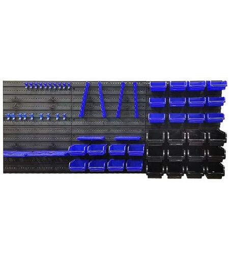 Optimisez votre espace de travail avec notre système complet d' outils & de stockage, composé de 66 pièces ! Cette solution de qualité supérieure offre non seulement un montage facile et une finition solide, mais aussi un rangement idéal pour les petites pièces et les outils. Le montage mural vous permet non seulement de mettre de l' ordre, mais aussi de garder vos outils à portée de main. Détails techniques Matériau : plastique Plaques murales : 6 pièces de 475 x 272 x 15 mm env. Porte-outils : 28 pièces Boîtes empilables (petites) : 20 pièces d' env. 100 x 100 x 50 mm. Bacs de rangement (grands) : 12 pièces à env. 160 x 102 x 75 mm Montage : mural Couleur : noir / bleu Contenu de la livraison : Système d' outils et de stockage composé de : 6 panneaux muraux à env. 475 x 272 x 15 mm 28 porte-outils différents 20 boîtes de rangement d' env. 100 x 100 x 50 mm 12 boîtes empilables à env. 160 x 102 x 75 mm matériel de montage pour les plaques murales Attention : livraison SANS outils / ...