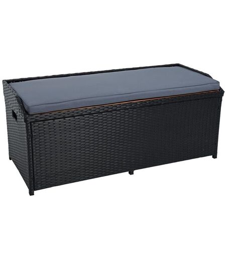 ESTEXO Banc de jardin en polyrotin avec coffre de rangement coussins, banc avec coffre noir
