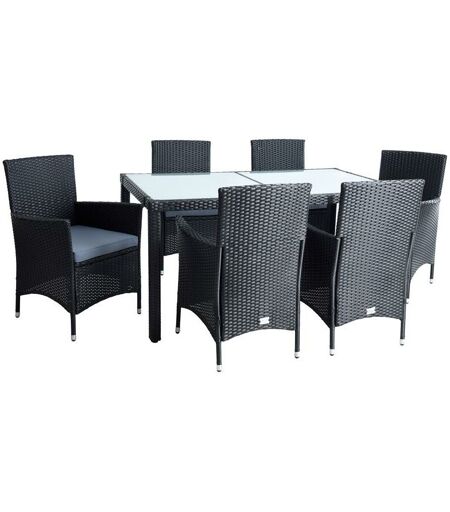 ESTEXO Salon de jardin 6 personnes fauteuils et table en polyrotin noir