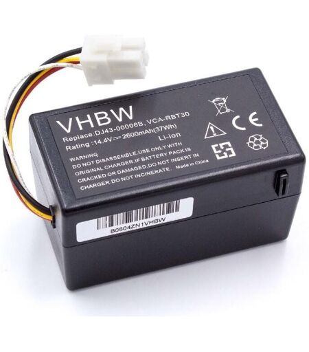 vhbw - the clever way - Batterie de rechange de haute qualité et compatible avec une grande autonomie et compatible avec votre aspirateur robot ou aspirateur robot ainsi qu'appareil de nettoyage (vous trouverez ci-dessous tous les modèles correspondants) - Nos batteries répondent à toutes les normes de sécurité actuelles Pour répandre une odeur fraîche avec votre robot aspirateur ou votre aspirateur, vous pouvez consulter nos offres de cartouches de parfum. CONTENU DE LIVRAISON : - 1x batterie DONNÉES TECHNIQUES : - Technologie : Li-ion - pas d'effet mémoire - Capacité : 2600 mAh - Tension : 14,4 V - Énergie nominale : 37,44 Wh COMPATIBLE AVEC : - Samsung Navibot SR8950 - Samsung Navibot SR8980 - Samsung Navibot SR8940 - Samsung Navibot SR8981 - Samsung Navibot VCR8940 Pour garantir la compatibilité, veuillez vérifier si votre batterie utilisée actuellement est répertoriée. REMPLACEMENT POUR : - Samsung DJ43-00006A, DJ43-00006B, DJ96-00152B, DJ96-00203A, VCA-RBT30 vhbw - Accessoires ...
