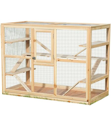 Description générale La cage pour rongeurs XXL Villa est l'habitat idéal pour vos hamsters, souris, petits animaux et rats. Conçue pour offrir un espace spacieux et luxueux, elle convient parfaitement à plusieurs rongeurs. Fabriquée avec des matériaux de haute qualité, sa durabilité est garantie. Spécifications techniques Dimensions : env. 120 x 60 x 90 cm (LxlxH) Dimensions de la porte : env. 27 x 39,5 cm (LxH) Matériau : bois non traité et grillage métallique Porte frontale verrouillable incluse Couvercle rabattable inclus Niveaux accessibles via 6 rampes Grillage métallique galvanisé pour circulation de l'air Niveau extractible pour un nettoyage facile Visible de tous les côtés Compatibilité et accessoires Convient aux souris, hamsters et autres petits rongeurs Accessoires inclus : roues pour hamsters, rampes, tunnels, plateformes, biberons Installation Facile à assembler, la cage est conçue pour un montage rapide et intuitif. Suivez les instructions fournies pour un assemblage ...