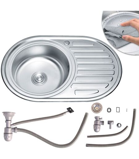 Description générale L'évier encastré rond de 77x50 cm est un choix élégant et pratique pour votre cuisine. Fabriqué en acier inoxydable de haute qualité, cet évier est durable, résistant à la corrosion et facile à entretenir. Il est doté d'une tablette de rangement intégrée sur le côté gauche, permettant de garder vos ustensiles de cuisine organisés et à portée de main. Sa grande profondeur et son design contemporain s'adaptent parfaitement aux cuisines modernes. Spécifications techniques Dimensions : env. 77 x 50 x 18 cm (LxPxH) Matériau : acier inoxydable Évier : Gauche Tablette : droite Garniture d'écoulement + siphon complet inclus (dévissable pour le nettoyage) Tendeur de fixation inclus Surface satinée moderne Filtre d'écoulement en acier inoxydable avec arrêt intégré Commande excentrique incluse Pré-percé pour la robinetterie (couvercle en acier inoxydable fourni) Cuvette ronde de haute qualité avec surface d'égouttage Finition robuste pour une utilisation quotidienne ...