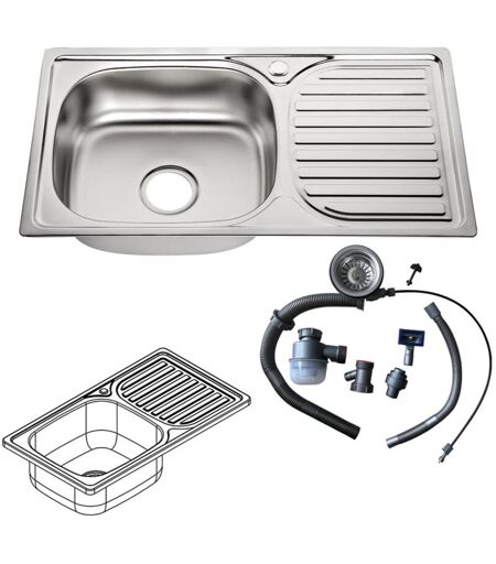 Evier en acier inoxydable de première qualité Cet évier de cuisine en acier inoxydable de qualité supérieure séduit par son design moderne et sa structure en lin. Description: Dimensions : env. 75,5 x 42 x 17 cm (LxlxH) Évier : Gauche Surface de rangement : Droite Matériau : acier inoxydable Y compris garniture d'écoulement + siphon complet (dévissable pour le nettoyage) structure de surface satinée moderne filtre d'écoulement en acier inoxydable avec arrêt de l'écoulement intégré Commande excentrique Pré-percé pour la robinetterie ( recouvert d'un couvercle en inox ) Evier encastré de haute qualité au design moderne Contenu de la livraison: 1 x évier avec tablette - droite Paquet d'accessoires XXL Garniture d'écoulement etc. ...