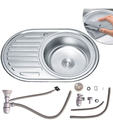 Melko - Evier de cuisine évier rond en acier inoxydable évier encastré évier de cuisine avec set de vidange et siphon