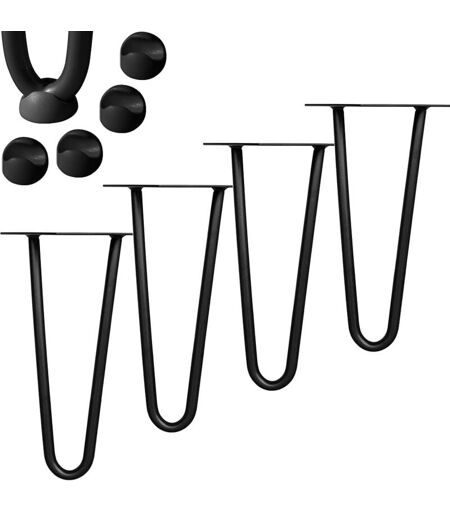MELKO 4 pièces Pieds de table en épingle à cheveux Pieds de table en épingle à cheveux en acier de 12 mm avec protection de sol - hauteur 20 cm, 2