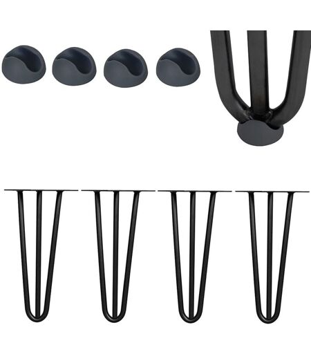 MELKO 4 pièces Pieds en épingle à cheveux Pieds de table en épingle à cheveux en acier de 12 mm avec protection de sol hauteur 20 cm, 3 supports, noir