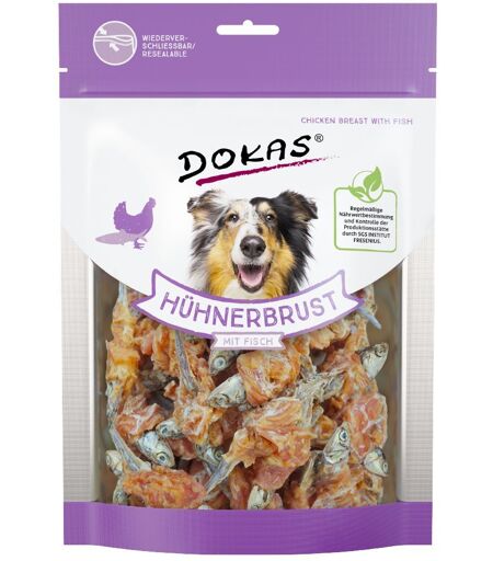 4x220g Dokas Friandises À Mâcher Poulet, Poisson - Friandises Pour Chien