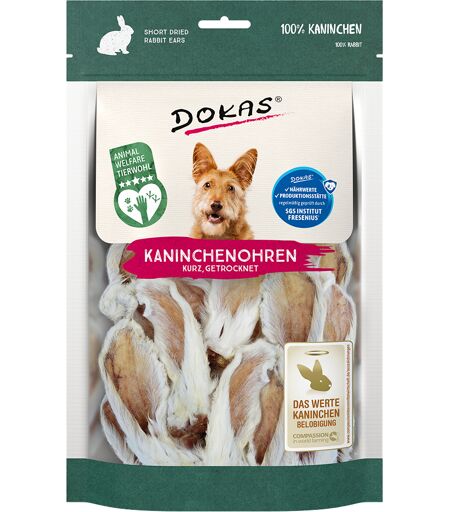 100g Oreilles de lapin Dokas avec poils - Friandises pour chien