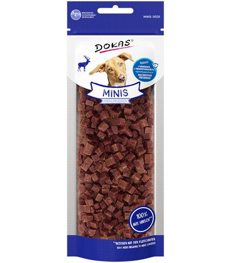 - 2 x environ 60 g Dokas Minis viande de cerf pour chien