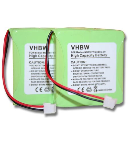 vhbw 2x NiMH Batterie 600mAh (2.4V) combiné téléphonique, téléphone fixe TEXET TX-D7400. Remplace: 5M702BMX, GP0827.