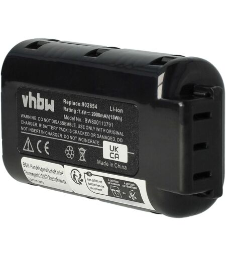 vhbw - the clever way - Batterie de rechange de haute qualité et compatible avec une grande autonomie pour votre outil électrique comme votre perceuse, marteau piqueur, ponceuse, tournevis, outil de cerclage ainsi que votre radio, scie à main et taille-bordures - Cette batterie est aussi idéale comme deuxième batterie - Nos batteries respectent toutes les normes légales Accessoire compatible de haute perfomance de la marque vhbw. CONTENU DE LIVRAISON : - 1x batterie DONNÉES TECHNIQUES : - Technologie : Li-ion - sans effet-mémoire - Capacité : 2000 mAh - Tension : 7,4 V - Énergie nominale : 14,8 Wh - Couleur : noir COMPATIBLE AVEC : - Paslode IM100Xi - Paslode IM200F18 - Paslode IM250A - Paslode IM250 Pour garantir la compatibilité, veuillez vérifier si votre batterie utilisée actuellement est répertoriée. REMPLACEMENT POUR : - Paslode 018880, 404400, 404717, 902400, 902600, 902654, B20543A, BCPAS-404717, BCPAS-404717HC vhbw - Accessoires et pièces de rechange de haute qualité pour ...