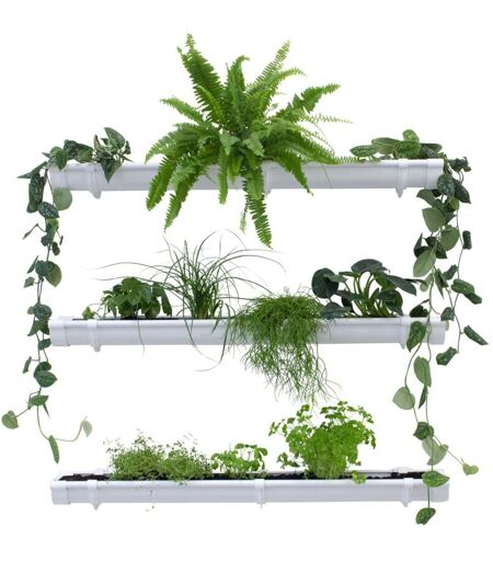 Jardinion - Mur végétal vert, jardin vertical 3 x 1m, aménagement de jardin peu encombrant, étagère pour plantes d'intérieur et d'extérieur - Blanc