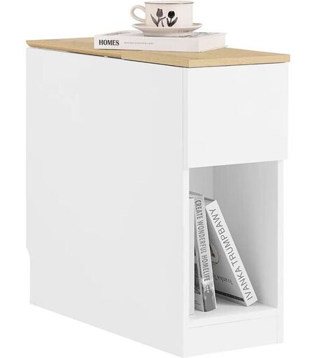 Sobuy Table D'appoint Étroite Avec Étagère Et Tiroirs, Table De Chevet Gain De Place Pour Petits Espaces, W25 X D65 X H60 Cm, Blanc Et Naturel - Fbt162-Wn