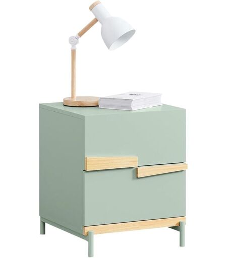 SoBuy FBT164-GR Table de Chevet avec 2 Tiroirs, Vert Doux – Table d’Appoint pour Chambre ou Salon, 40 x 49 x 44 cm Rangement double pratique : Dotée de deux tiroirs spacieux, cette table de nuit vous permet de ranger efficacement tous vos essentiels : livres, lunettes, carnets, télécommandes ou petits objets du quotidien. Tout reste à portée de main, dans un intérieur bien organisé. Format compact et usage polyvalent : Avec ses dimensions contenues (40 x 49 x 44 cm), cette table s'adapte aussi bien à la chambre en tant que chevet qu’au salon ou à un coin lecture comme table d’appoint. Peu encombrante mais très fonctionnelle. Matériaux solides et finitions robustes : Fabriquée en MDF et panneau de particules PB (norme E1), renforcée par des éléments métalliques et dotée de poignées en bois de pin massif, cette table peut supporter jusqu’à 20 kg. Elle conjugue élégance, stabilité et durabilité. Style moderne et touche de fraîcheur : Ses lignes épurées et sa teinte vert doux insufflent ...