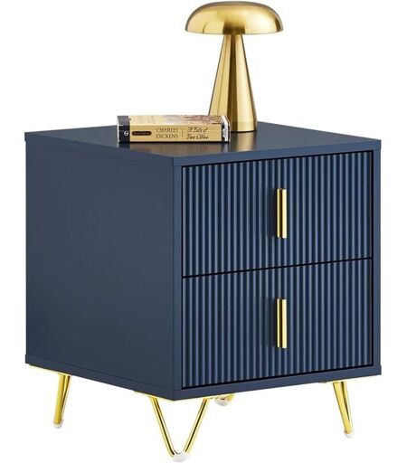 SoBuy Table de Chevet avec 2 Tiroirs, Bleu, FBT115-B Cette table de chevet moderne s’intègre facilement dans différents styles de chambre et de salon. Avec ses deux tiroirs spacieux, elle offre un grand espace de rangement pour vos essentiels du quotidien et garde vos affaires toujours à portée de main. La finition laquée bleue, combinée aux pieds et poignées en métal doré, apporte une touche élégante et raffinée à votre intérieur. Robuste et stable grâce à sa structure en MDF (E1) et ses pieds en métal, elle supporte jusqu’à 25 kg – idéale comme table de nuit ou comme table d’appoint. Polyvalente : elle peut être utilisée dans la chambre, le salon ou même un bureau/dortoir pour optimiser les petits espaces. Astuce déco : utilisez deux tables de chevet pour un style symétrique et harmonieux dans votre chambre. Le produit est livré avec des instructions claires et des accessoires pour un montage facile et rapide. Caractéristiques : - Matériau : MDF (E1) avec finition laquée bleue, ...
