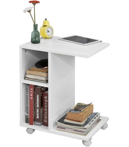 Sobuy - Bout de Canapé Table d'Appoint Moderne roulante avec 2 étagères de rangement FBT48-W ®