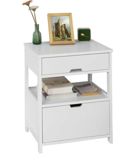 Table de Chevet Bout de Canapé Table d'Appoint avec 2 tiroirs et 1 étagère de Rangement Sobuy FRG258-W