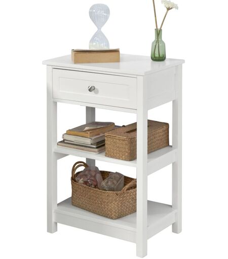 Sobuy® Fbt46-W Table De Chevet Bout De Canapé Table D'appoint Avec 1 Tiroir Et 2 Étagères De Rangement - Blanc