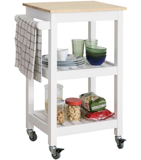 Sobuy Fkw67-Wn Chariot De Service Desserte À Roulettes Table Roulante Cuisine Avec 2 Étagères Et 1 Porte-Torchon