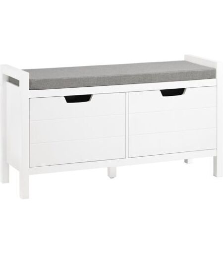 Sobuy Fsr63-W Banc De Rangement Meuble Bas Entrée Avec Coussin Rembourré Et 2 Portes, Meuble D'entrée Commode À Chaussure Banquette Confortable