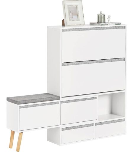 Sobuy Fsr134-W Meuble À Chaussures Avec 1 Amovible Sur Pieds, Meuble D'entrée Avec 2 Abattants, 2 Portes, 2 Tiroirs Et Coussin Assisse