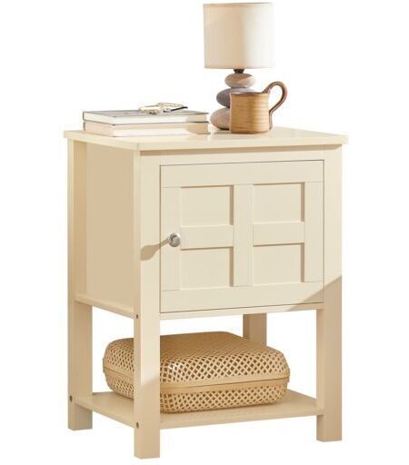 SoBuy Table de Chevet Table de Nuit, FBT113-MI Un design simple et une couleur beige chaude ajoutent un charme moderne à votre pièce. Cette petite table peut être utilisée comme chevet de lit, table d'appoint, table de téléphone dans votre chambre à coucher, salon, bureau ou même couloir pour profiter pleinement de votre espace. Dotée d'un plateau, d'une porte et d'une étagère, cette table vous permet d’organiser vos objets en ordre et de les prendre facilement. La lampe, les cadres de photo, le réveil ou le téléphone peuvent trouver leur place sur le plateau. Des livres et les petits objets comme des clés ou des objets privés peuvent être bien rangés dans les deux compartiments derrière la porte. Le faible encombrement convient également aux pièces étroites. Hauteur 60cm - idéale pour les lits standard. La surface est facile à nettoyer avec un chiffon humide ou sec, ce qui permet de gagner beaucoup de temps. Détails: - Matériau : bois MDF de classe E1. - Dimensions (L x l x H) : 45 x 35 x 60 cm. - Capacité de charge statique maximale : 50 kg. - Poids de l’envoi : 10,5 kg. - Installation facile avec la notice de montage illustrée. Cet article est livré sans éléments décoratifs des photos. Facture fournie. ...