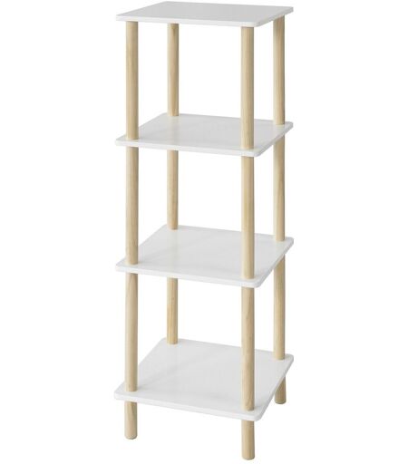 Sobuy® Str03-K-Wn Étagère De Rangement Bibliothèque Étagère Avec 4 Tablettes Étagère De Cuisine Étagère Polyvalente Étagère À 4 Étages En Pin Blanc/Naturel- L36 X H106 X P36 Cm