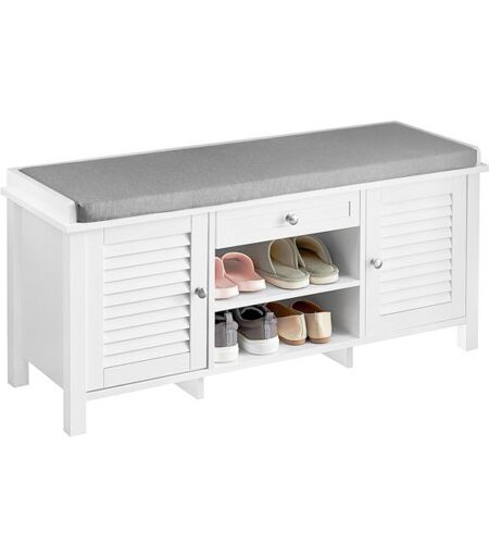 Sobuy Fsr83-W Banc De Rangement Avec Coussin Rembourré Meuble Bas Entrée Commode À Chaussure Banquette Confortable Avec 1 Tiroirs, 2 Portes Et 2 Etagères