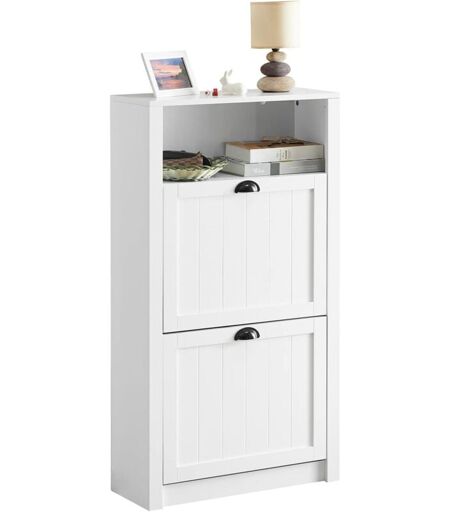 Sobuy - FSR87-K-W Meuble à chaussures Armoire à Chaussures Commode à Chaussures 2 abattants Meuble d'entrée Coffre Rangement