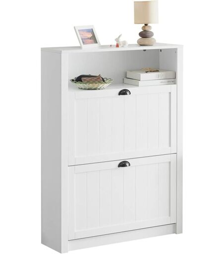Sobuy - FSR87-W Meuble de Rangement à Chaussures Armoire à Chaussures Commode à Chaussures 2 abattants