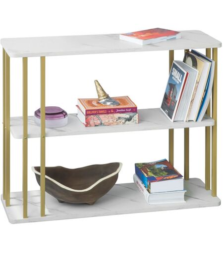 Sobuy Fbt96-G Bout De Canapé De Rectangle Table D¿Appoint Table De Console D¿Effet Marbre Cadre Et Pieds En Fer Haute Qualité 80x24x63 Cm - Doré