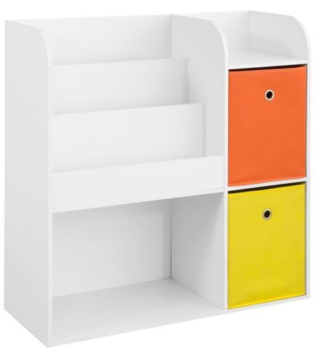 Sobuy Kmb37-W Étagère De Rangement Pour Livres Et Jouets Enfant Bibliothèque Étagère À Livres Meuble De Rangement Multifonctionnel Avec 2 Paniers