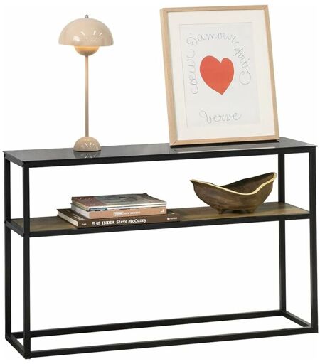 SoBuy Table Console avec Surface en Verre Table d'Entrée en Métal Table Décorative Buffet Table d'Appoint Vintage, 110x30x70cm, FSB43-SCH Design simple et rétro. Cette table d'appoint est idéale pour le couloir, l’entrée, la chambre, le salon, etc. Les pieds sont faits de tubes carrés en fer de dimensions 2x2cm. Cette table console avec deux étagères est parfaîte non seulement pour stocker, mais aussi comme une décoration. Équipée de patins au niveau de ses pieds afin d'éviter les rayures sur votre sol. Facile à nettoyer à l'aide d'un chiffon légèrement imbibé d'eau. Facile à installer, avec tous les accessoires requis pour l'installation. Caractéristiques : - Matériau : verre trempé, MDF et fer d’haute qualité. - Dimensions: L110cm x P30cm x H70cm. - Capacité Max : 40 kg. - Poids de l'envoi : 10,39 kg. - Cet article est livré sans éléments décoratifs des photos. Avec la notice de montage illustrée et les pièces numérotées, le montage est facile. Facture fournie. SoBuy met à ...