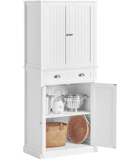 Sobuy Fsb44-W Armoire De Cuisine, Meuble De Rangement Cuisine, Buffet Placard Avec 4 Portes, 1 Tiroir Et Étagères Réglables, Pour Cuisine, Salle À Manger, Salon, Salle De Bain, Blanc