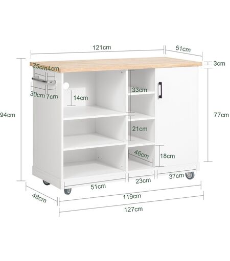 Sobuy Fkw105-Wn Desserte Roulante Chariot De Cuisine Meuble De Rangement À Roulettes Chariot De Service Îlot De Cuisine Buffet Multifonctionnel Armoire Micro-Ondes