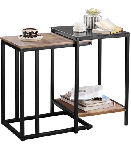 Sobuy - FBT99-F Tables Basses Gigognes, Lot de 2, Tables d'Appoint Empilables, Bouts de Canapé, Tables de Salon en Bois et Verre Trempé avec Cadre en