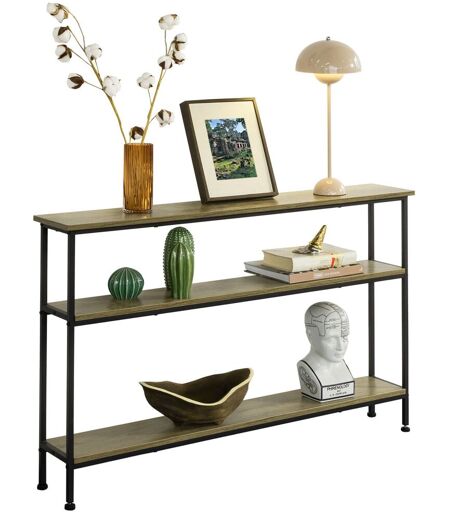 Sobuy Fsb49-Pz Table Console Table D’Entrée Buffet Bout De Canapé Table D'appoint Avec 3 Étagères De Rangement – L120 X P20 X H77 Cm, Cadre En Fer, Style Industriel