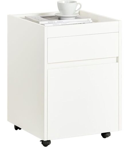 SOBUY FBT121-W Caisson Bureau Mobile, Petit Meuble à Dossier sur Roulettes, Meuble de Rangement Mobile, Rangement Document 2 tiroirs, 4 roulettes, Blanc,