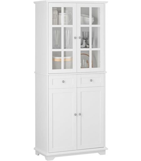 SOBUY FSB76-W Buffet Haut, Buffet de Cuisine, Armoire de Rangement, Meuble Vitrine, Meuble de Rangement pour Cuisine Salle à Manger Salle de Séjour avec 4