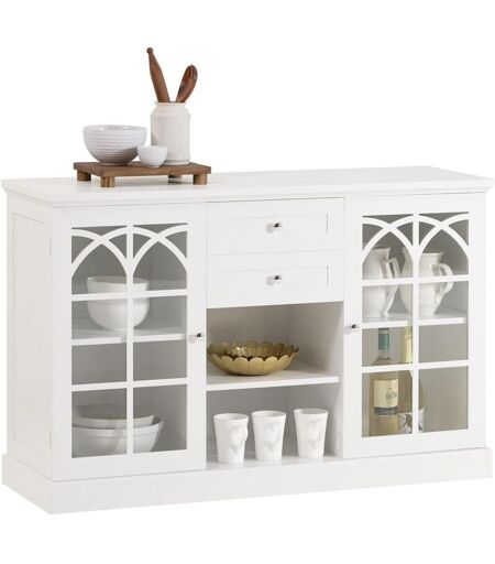 SoBuy FSB79-W Buffet Commode Dressoir Armoire de Cuisine Multi-Rangement avec 2 Portes Vitrées, 2 Tiroirs, 2 Compartiment, Meuble de Rangement pour