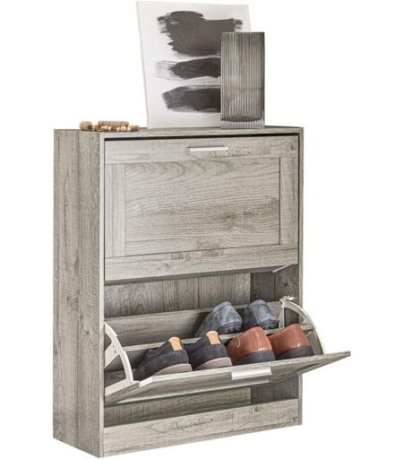 SoBuy FSR137-HG Meuble à Chaussures Armoire à Chaussures Commode à Chaussures Meuble d'entrée, Meuble de Rangement à Chaussures avec 2 Abattants pour