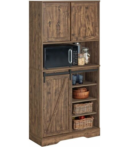 FSB83-N Buffet de Cuisine Meuble de Rangement Armoire de Cuisine Multi-rangements Buffet de Salle à Manger avec Porte de Grange Coulissante - Sobuy