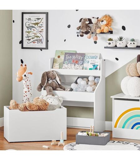 SoBuy KMB71-W Meuble de rangement pour Enfants Ce meuble d?enfant polyvalent satisfait les besoins des enfants de ranger leurs jouets, livres et d?autres objets. Vous pouvez les mettre à n?importe quel endroit : chambre d'enfant, salle de jeux, salon ou école maternelle. Avec une étagère en haut et 2 paniers de rangement, ce meuble enfant offre suffisamment d'espace de rangement. Un grand tiroir dans la partie inférieure de la bibliothèque, il est idéal pour ranger poupées, vêtements ou autres objets. Équipée de 4 roulettes, le compartiment amovible peut se déplacer facilement et se maintenir en place. Le compartiment amovible peut être utilisé séparément et vous offre un espace de rangement supplémentaire. La hauteur correspond les besoins de la plupart des enfants. Idéale pour les petits passionnés de lecture. Les coins de ce compartiment sont arrondis afin de renforcer la sécurité des enfants. Le dispositif antichute à l'arrière améliore la sécurité du produit, vous pouvez donc être assuré que vos enfants peuvent jouer à proximité. Attention : Ascension interdite ! À utiliser sous la surveillance d'un adulte. Vous pouvez également combiner cette étagère avec le coffre de rangement enfant KMB70-W en tant qu'ensemble. Détails: - Matériaux : bois MDF (E1) laqué blanc, 2 paniers en tissu non tissé. - Dimensions : L63 x P32 x H80 cm. - Poids de l?envoi : 19 kg. - Poids de l?article : 17,4 kg. - Capacité de charge : 37 kg. - Installation facile avec la notice de montage illustrée. Cet article est livré sans éléments décoratifs des photos. Avec la notice de montage illustrée et les pièces numérotées, le montage est facile. Facture fournie. ...