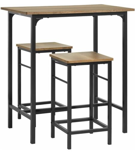 OGT10-PF Lot Table et 2 Tabourets Ensemble Table de Bar Bistrot + 2 Chaises de Bar avec Repose-Pieds Table Haute Cuisine - Sobuy