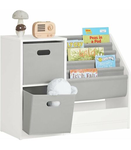 Sobuy - KMB76-W Bibliothèque pour Enfants, Organisateur Jouets et Livres, Étagère de Rangement pour Enfants avec 2 Paniers, 5 Étagères et 1
