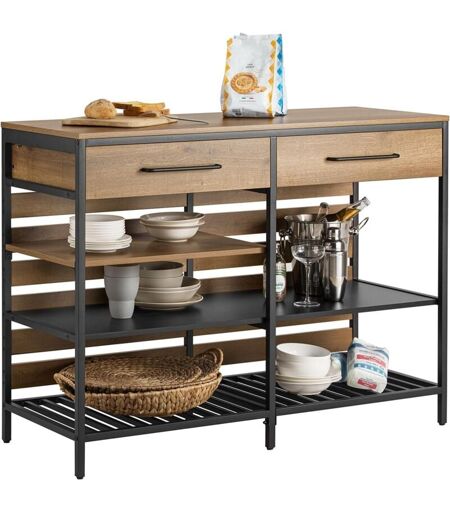 SOBUY Lot Central Style Industriel, 2 Tiroirs, 3 Étagères, Cadre Acier Stable, Multifonction Cuisine et Salon, 60×120×90 cm, Plateau en Panneaux de