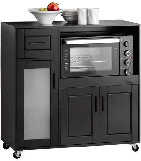 SOBUY FSB78-SCH Meuble Micro-Ondes Buffet Commode sur roulettes Armoire de Cuisine Multi-Rangement avec 3 Portes, 1 Tiroir, 1 Compartiment, pour Cuisine,